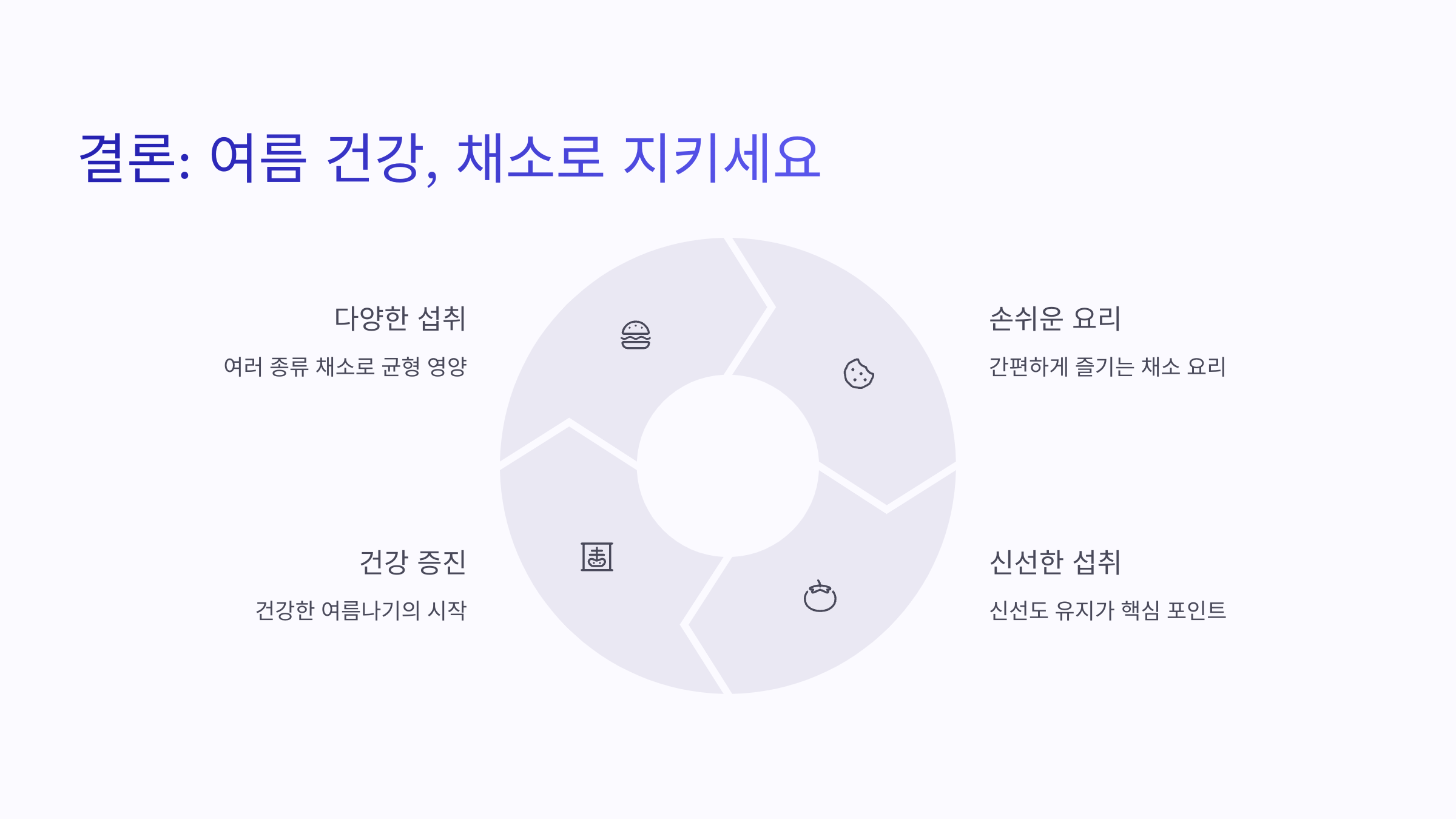 여름철 제철 채소는 맛도 좋고 건강에도 유익합니다. 무더위에 지치지 않도록 우리 식탁에 신선한 여름 채소를 더해보세요. 특히 오이, 가지, 토마토는 수분 보충과 피부 보호에 큰 도움이 되며, 열무나 깻잎은 여름철 입맛을 살려줄 수 있는 훌륭한 선택입니다.