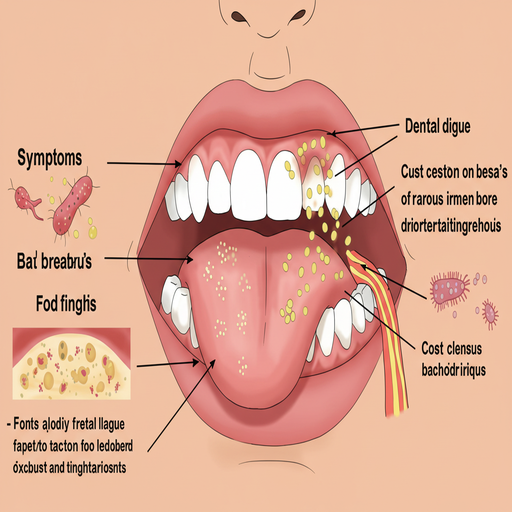 | 구강 위생 불량 | 충치, 잇몸 질환(치주염), 제대로 관리되지 않은 보철물, 그리고 혀에 끼는 설태가 가장 흔한 원인이에요. 특히 혀 안쪽은 세균이 번식하기 좋은 장소랍니다. |